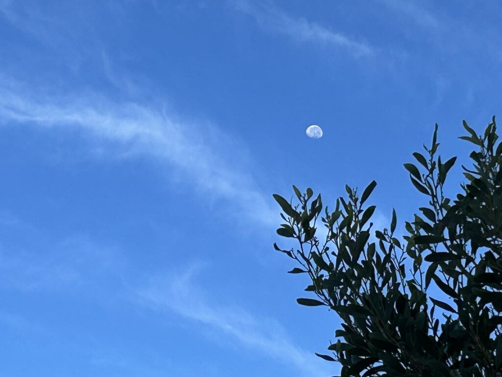 Một ngày trăng mọc sớm giữa bầu trời trong xanh